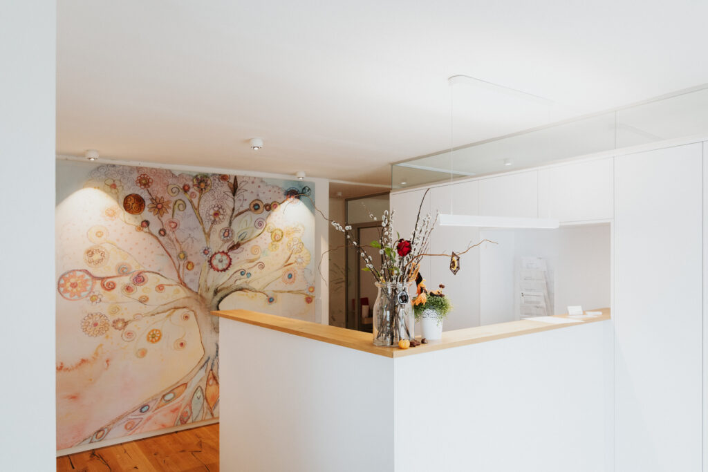 „Bei der Gestaltung unserer Praxis haben wir bewusst auf natürliche Materialien und ein gesundes Raumklima geachtet.“